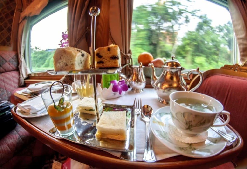 Każdego ranka zapach świeżo mielonej kawy rozchodził się po kabinie. O indywidualnie umówionej poprzedniego wieczoru godzinie steward pukał do drzwi i podawał lekkie, ale pożywne śniadanie. Zarówno lunch, jak i kolacje proponowane są gościom o dwóch różnych godzinach do wyboru. Dzięki temu unika się tłoku i daje poczucie wyjątkowości każdemu podróżnemu. Co więcej, osoba na enigmatycznym stanowisku Maître d’hôtel codziennie rozpisuje układ stołów, aby za każdym razem goście zasiadali do posiłku z inną, ciekawą osobą. Poza trzema wykwintnymi restauracjami w pociągu są także: piano bar, biblioteka z kącikiem masażu, niewielki butik z pamiątkami i wspomniany wcześniej otwarty wagon obserwacyjny. Mimo licznych atrakcji, warto również przeznaczyć kilka chwil dla siebie, zajrzeć do ulubionej książki lub napisać list do najbliższych na papierze sygnowanym logo pociągu. Ja wykorzystałem ten czas na spisanie niniejszej relacji z podróży.