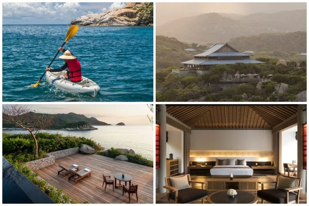 Accomodation Amanoi It is situated in a breathtaking location, surrounded by the majestic mountains of Nhieu Chua National Park. Its name translates from Sanskrit as "quiet place." It combines ultra-modern comfort, stylish design, and the exotic charm of the country. The bay's waters are the perfect place to admire colorful corals and a variety of fish species.