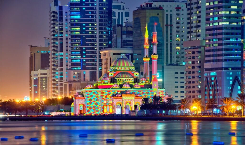 Chociaż w Szardży jest wiele meczetów, meczet Al Noor jest idealny do oglądania nocą. Znajduje się na Corniche, jest jednym z najważniejszych w emiracie. Projekt architektoniczny meczetu Al Noor to wpływ klasycznej tureckiej architektury osmańskiej. Znajdziecie tu elementy podobne do meczetu Sułtana Ahmeda w Stambule (znanego również jako Błękitny Meczet).