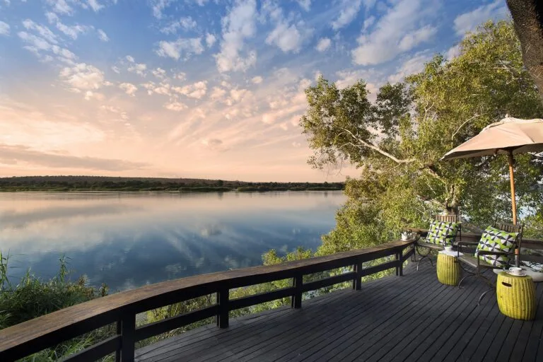 Ekskluzywny lodge usytuowany na brzegu rzeki Zambezi, z którego można wybrać się na safari i...