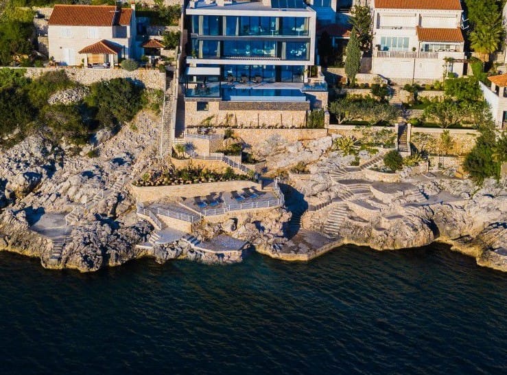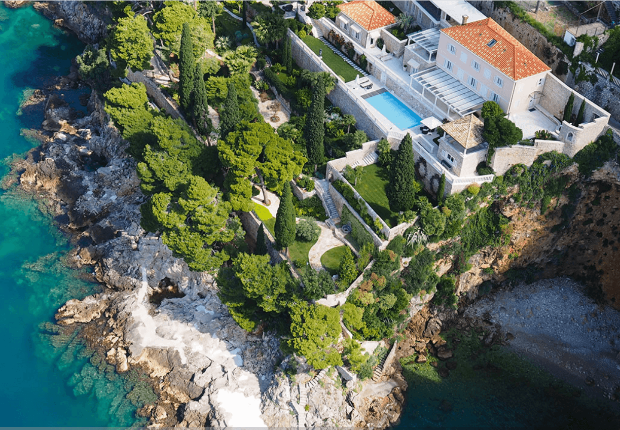 Jedna z najpiękniej położonych wolnostojących willi w Dubrowniku znajduje się wśród gajów oliwnych, ogród i lasów sosnowych. Mieści się na wysokim klifie, z którego rozciągają się niesamowite widoki na Adriatyk. Dodatkowym atutem jest fakt, że od starego miasta w Dubrowniku willę dzieli zaledwie 500 m. Imponująca powierzchnia, na której położona jest rezydencja wynosi aż 8000 metrów kwadratowych.