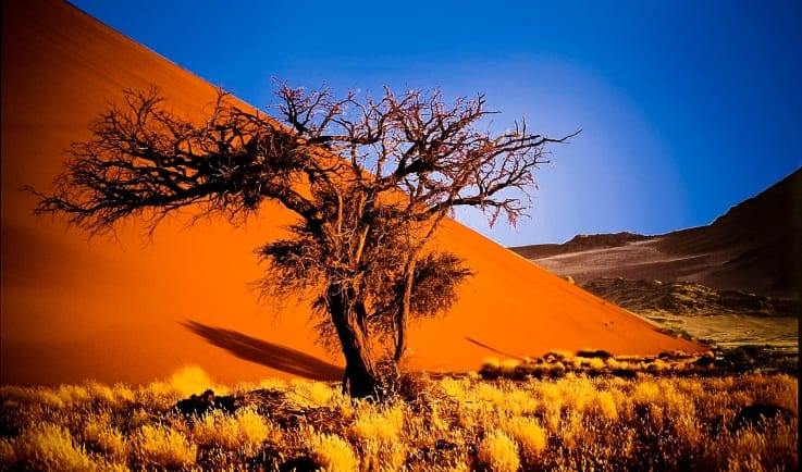 Zdecydowanie namawiam również na kilkudniowe safari samolotem Cesna 210 Wybrzeżem Szkieletowym Namibii. Bierze ono swój początek na południe od rzeki Orange, prowadzi przez całe namibijskie wybrzeże, przecina rzek´ Kunene i kończy się w Angoli, 200 km od granicy obu krajów. Podczas tej ekscytującej wyprawy zobaczycie m. in. w Sossusvlei, na terenie Namibijskiego Parku Narodowego – Naukluft, najwyższe na świecie wydmy koloru czerwieni (ich wierzchołki sięgają 300 m).